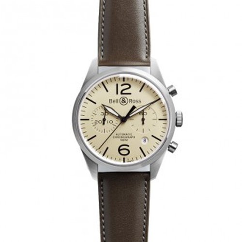 Black Friday Bell & Ross Vintage 126 Chronograph Beige Dial Brown Leather Strap Men's Watch Deals