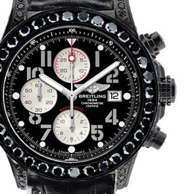 Black Friday 35 ct Black diamond Breitling Super Avenger Watch Black Dial Numbers Black Leather Band Deals
